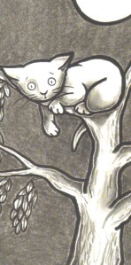 The story too is very simple: Kitten sees moon, Kitten wants moon, Kitten tries to get moon. Young children will find it very satisfying, as they know the moon isn’t a bowl of milk! Gentle repetition of “Poor Kitten!” gives way in the end to “Lucky Kitten!” as she falls asleep after her milk.