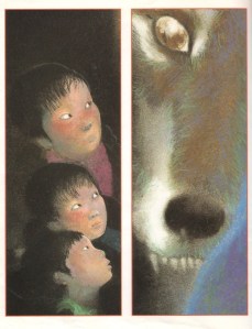 The pastel illustrations are gorgeous, suspenseful, and creepy. The wolf is rendered realistically and is quite frightening.