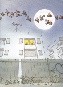 This is a very original setting for fairy spotting, and a welcome tale for all those city-bound children who think fairies can only be found in woods or meadows. Jethro and his family are very gypsy-like in appearance and lifestyle. Even more than a fairy story, this is a story about welcoming travelling strangers. And about “having time for fairies”, ie. taking time to enjoy life’s small pleasures together.
