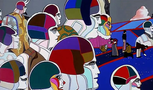 The basic fairytale-ishness of the plot is immediately appealing to kids, though its presentation is so visually weird it may freak them out. That is what I, as an adult, feel certain of, though my 4-year-old saw only the humour. As she put it, “the strange makes it funny”. I think kids will fully appreciate how unusual the artistic style is – it’s certainly a breath of fresh air from any other kind of animation they see. Also story-wise, it’s so rambly and nonsensical that it’s a welcome novelty on that level too. The fact that the Beatle characters (not actually voiced by the Beatles) are mumbly and their obscure puns can’t always be heard may not totally bother children, who just float along with the story. And in the end our heroes offer the Blue Meanies the hand of friendship, so the overall message is one of peace and love.