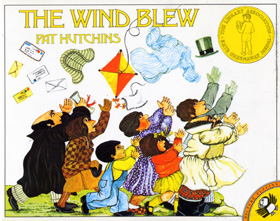A mischievous wind blows everyone’s belongings up into the air. One by one a crowd gathers to chase the wind. In the end the wind mixes everything up and drops it down before heading out to sea.