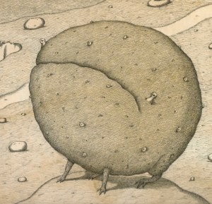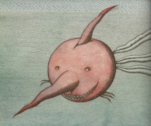 The concept and poems are great fun, and the fascinating illustrations lend the book an air of scientific seriousness. Reminiscent of Elizabethan-era etchings of sea monsters and far-away lands, these illustrations present the creatures as nonsensical, yet dignified and sometimes melancholy. They are shown in rather lonely, barren settings, and their strange physiognomies often cause them great difficulty, ie. the Petrelephant whose wings are too small for it to fly, or the Cardinalbacore, forever struggling between water and air.