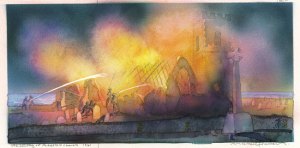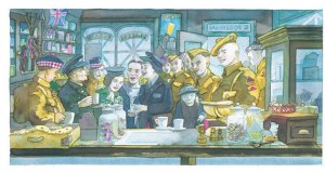 Unsentimental but still poignant and heart-felt, the text and glorious watercolours of this book perfectly depict what life was like for children during the war. The focus is both on details (favourite candies, a boy’s fascination with the minutiae of bombs and planes, the games played on the village green) and dramatic incidents (the church fire, troop manoeuvres in a nearby field, air raids, and bonfire celebrations at war’s end).
