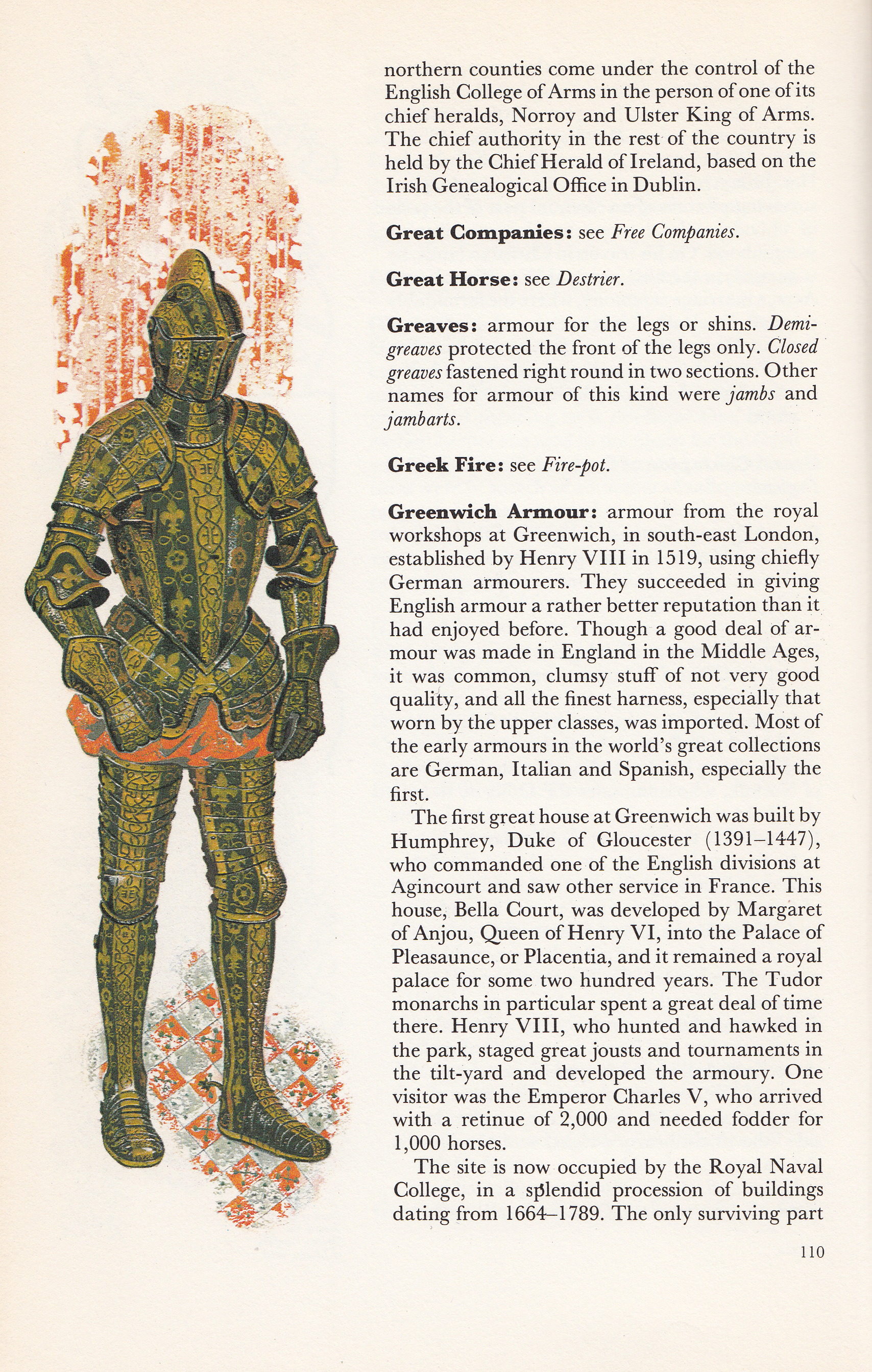 At the end is a subject index, with lists of all the words relating to heraldry, or armour, or weapons, for example.