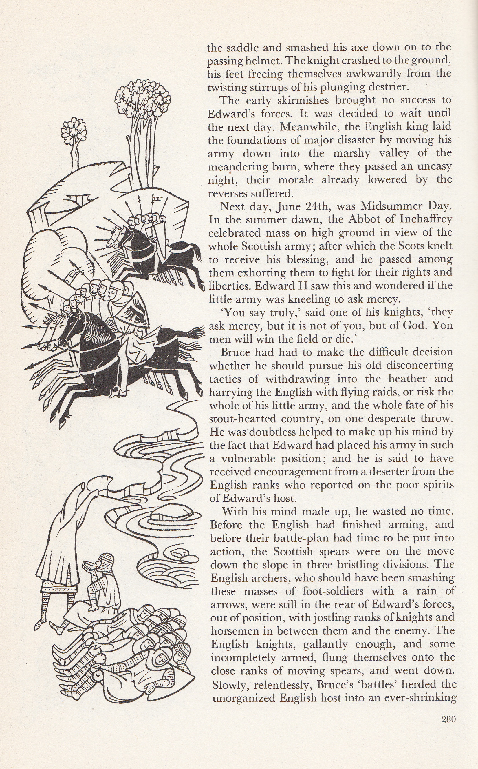 Among the biographies I found this terrific quote from the french knight Bayard, defending a town against Charles of Austria. When asked to surrender he replied “I need a bridge by which to march out, and your bodies have not yet filled the ditch.” I also learned that Sir Thomas Malory, the knight who famously collected all the Arthurian legends into one book for the early printer William Caxton, was not so wonderfully chivalrous himself, being a thief and cattle-rustler, and he did much of his writing in jail.