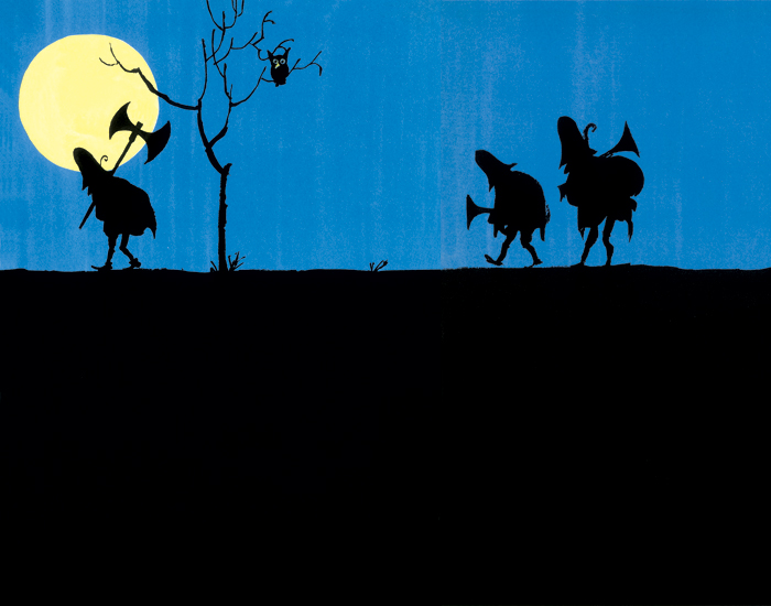 Three robbers terrorize the countryside, skulking about and robbing travellers. One evening they stop a carriage whose only passenger is an orphan named Tiffany. She is on her way to live with a wicked aunt, and is thrilled to meet the robbers. They take her home. When she sees their hoarded treasure she asks what it’s for, a question they’d never considered. The robbers are moved to spend their ill-gotten loot on a home for orphans, and are instantly reformed.