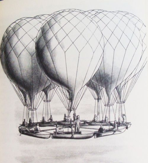 This tale weaves together fact and fantasy – the former in stories from ballooning history, and the latter with diamond minds and a secret community on the remote island of Krakatoa. Sherman’s original plans go awry when meddlesome seagulls force him to crash land on Krakatoa, narrowly missing becoming a shark’s breakfast. He is rescued and taken in by a mysterious group of inventors and adventurers. Having discovered a vast diamond mine on Krakatoa, they have used their wealth to create a society centred around gourmet food, build themselves sumptuous homes, and indulge their love for crazy inventions. (Witness the self-making bed with continuous sheets, and the rather dangerous electrical armchairs.) Sherman is just settling down in his new home when the volcano begins to rumble. The 80 inhabitants (+ guest) have barely enough time to put their escape plan into action – rising into the air on a vast platform lifted by twenty enormous balloons just before Krakatoa explodes!