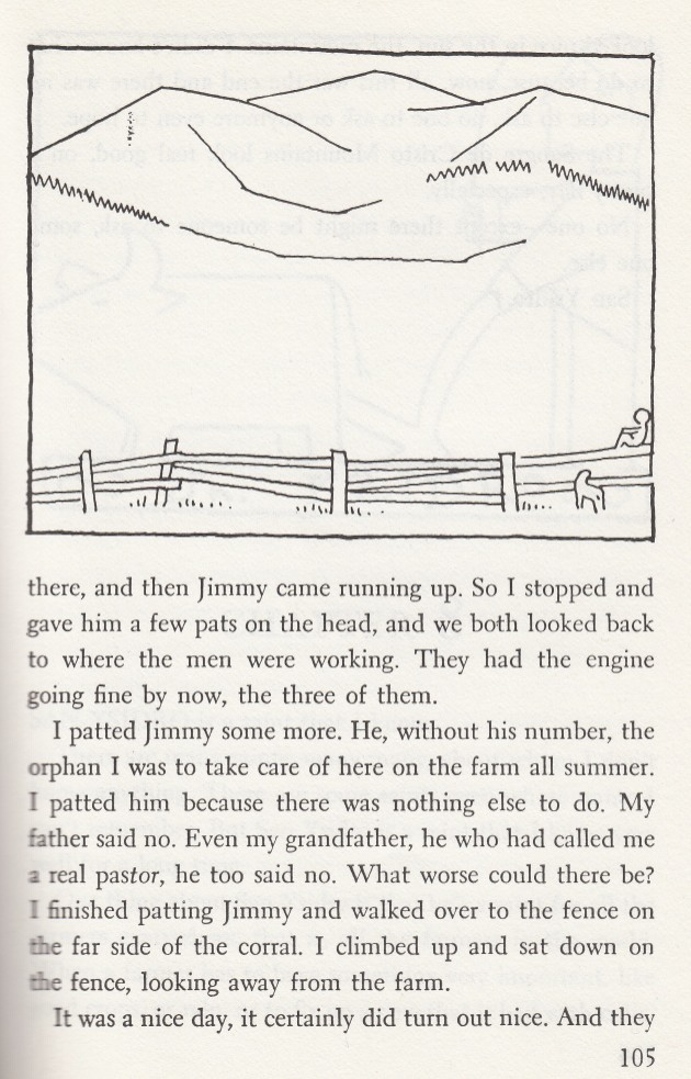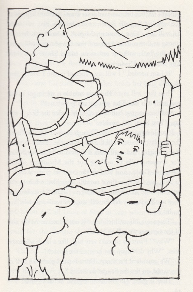 This is a deceptively simple narrative, one that provides more information about sheep than you ever wanted to know, but the inner logic and musings of this unusual and thoughtful boy are really well drawn. I particularly liked how his most careful thoughts become scrambled whenever he blurts them out to his father or another adult. He is clearly rattled by grownups, and must learn to think carefully before speaking and try harder to make his meaning clear. At the end of the book there is a very long passage in which he discusses his theories of prayer and having wishes come true with his brother Gabriel, who at last understands him completely.
