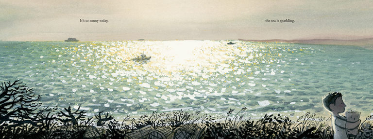 The boys thoughts return periodically to the miners, out of sight as they toil deep in the earth beneath the sea. The danger of the work is not stated outright, and nowhere does the boy say he is worried, but the relief he and his mother feel when his father appears at the door at the end of the day is palpable.